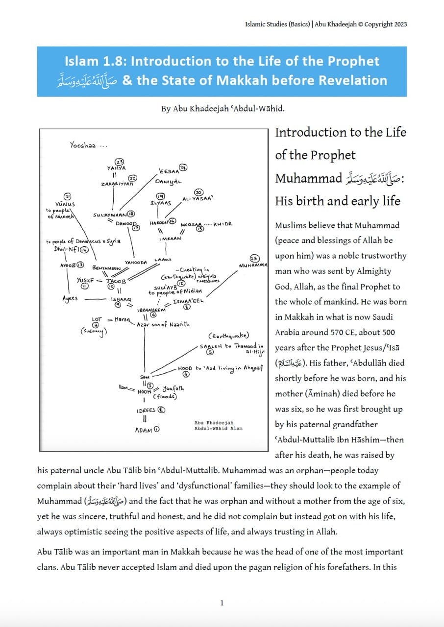 The course also serves as an excellent foundation for those who wish to pursue the International GCSE certificate or Advanced Level Islamic Studies course with Shaikh Abu Khadeejah in the future, inshā’-Allāh. The course content has been created by Abu Khadeejah ʿAbdul-Wāhid, and includes thousands of pages of study notes with new content being added weekly—all praise is for Allāh, and may Allāh bless it.