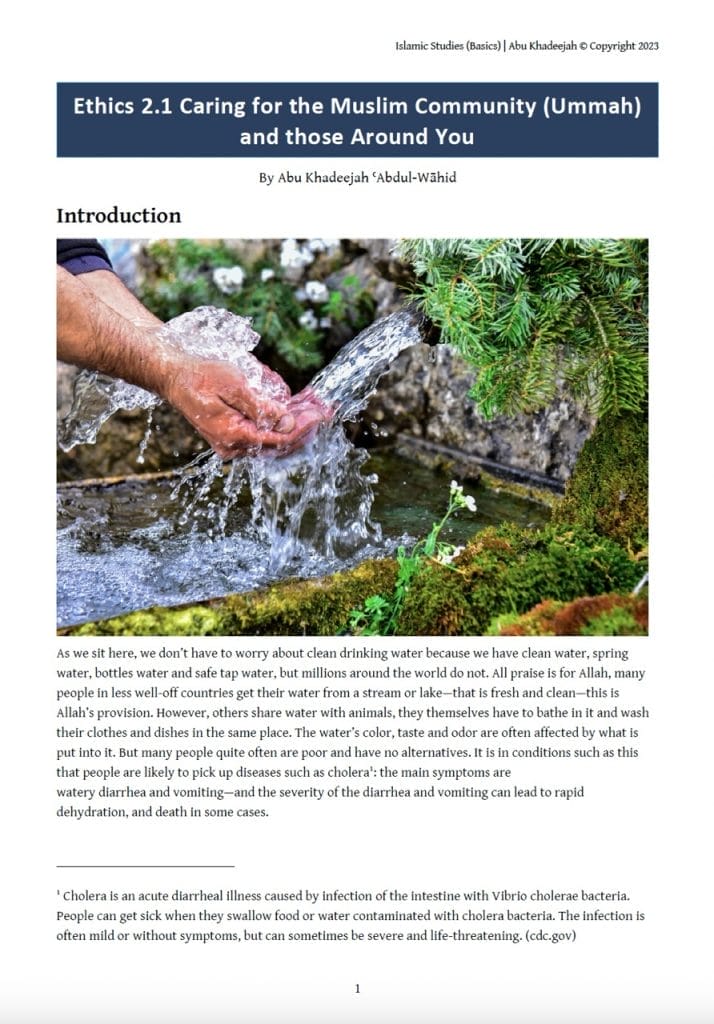 Each lesson comes with about 10 pages of bespoke copyright study notes, all prepared by Abu Khadeejah, may Allah bless the work and effort. That’s thousands of pages throughout the course. Here are a few samples of the first pages: